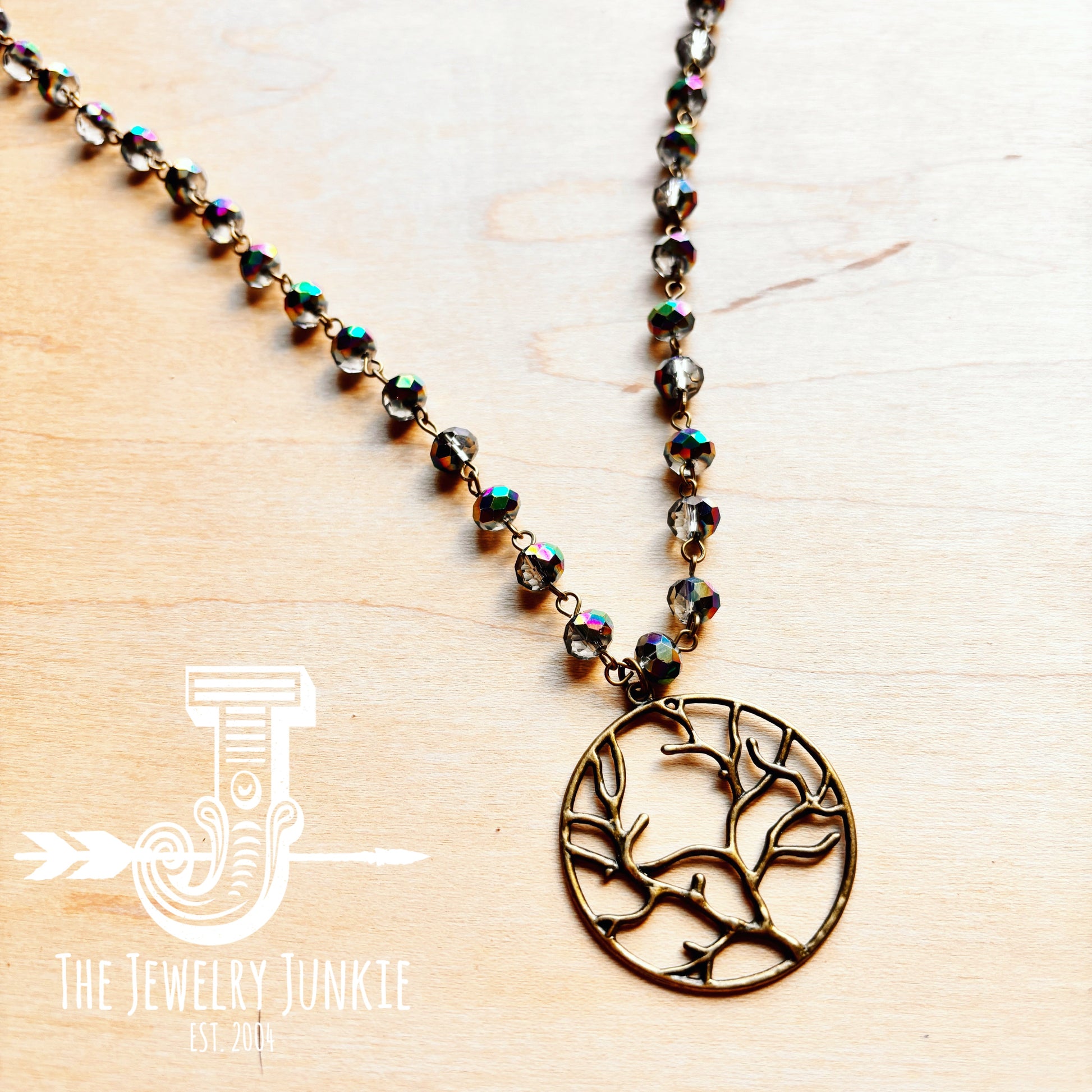 Indigo Faceted Beaded Necklace w/ Tree of Life 257k