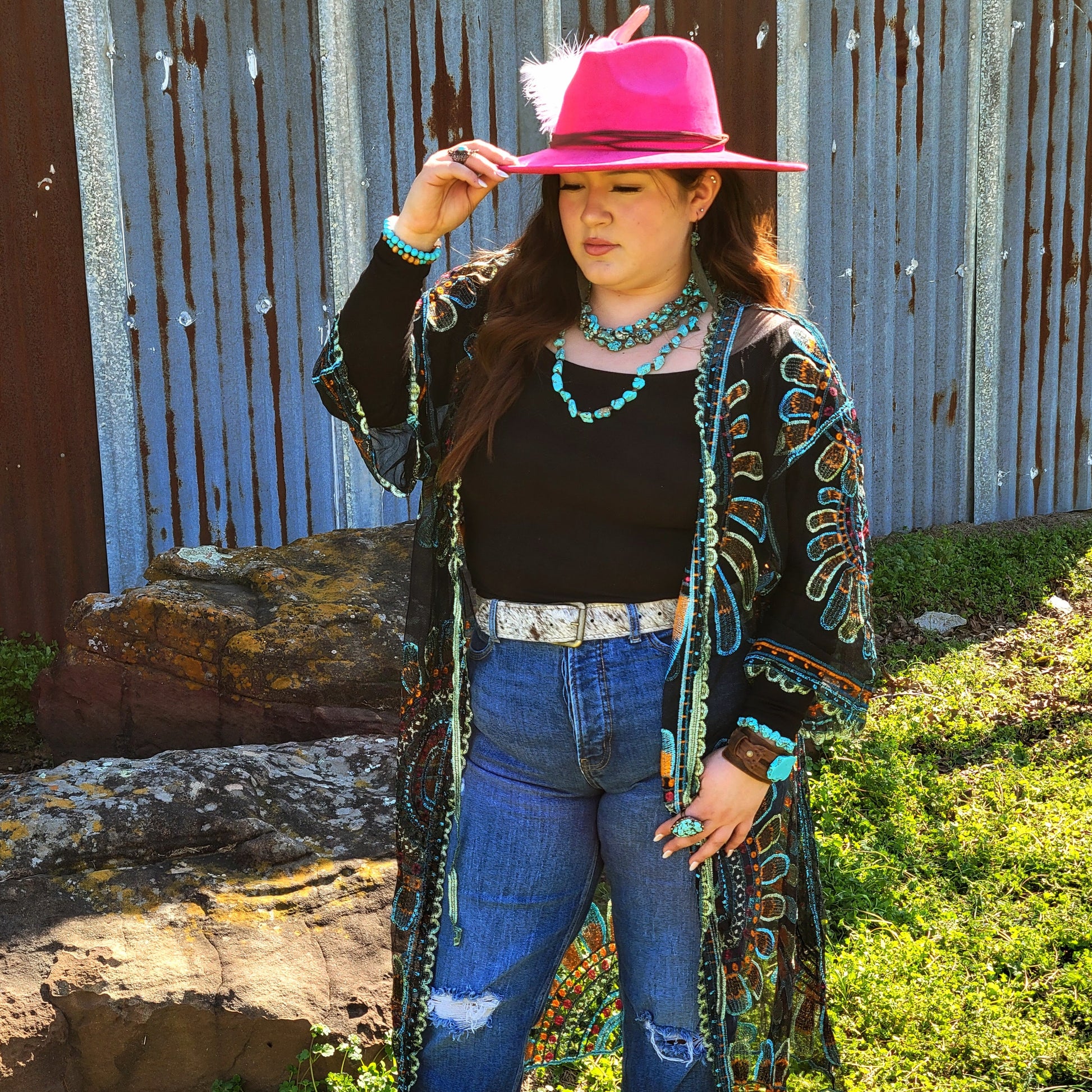 Indulge in this stunning turquoise necklace. Handmade in Texas, this necklace is a unique addition to any boho or western fashion ensemble. The genuine magnesite turquoise stones add a touch of natural beauty. Elevate your style with this one-of-a-kind piece!