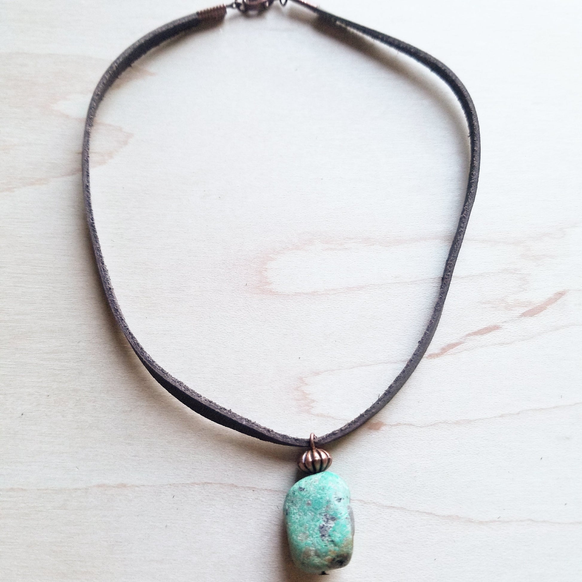 Leather Choker with Genuine Natural Turquoise Accent 242z