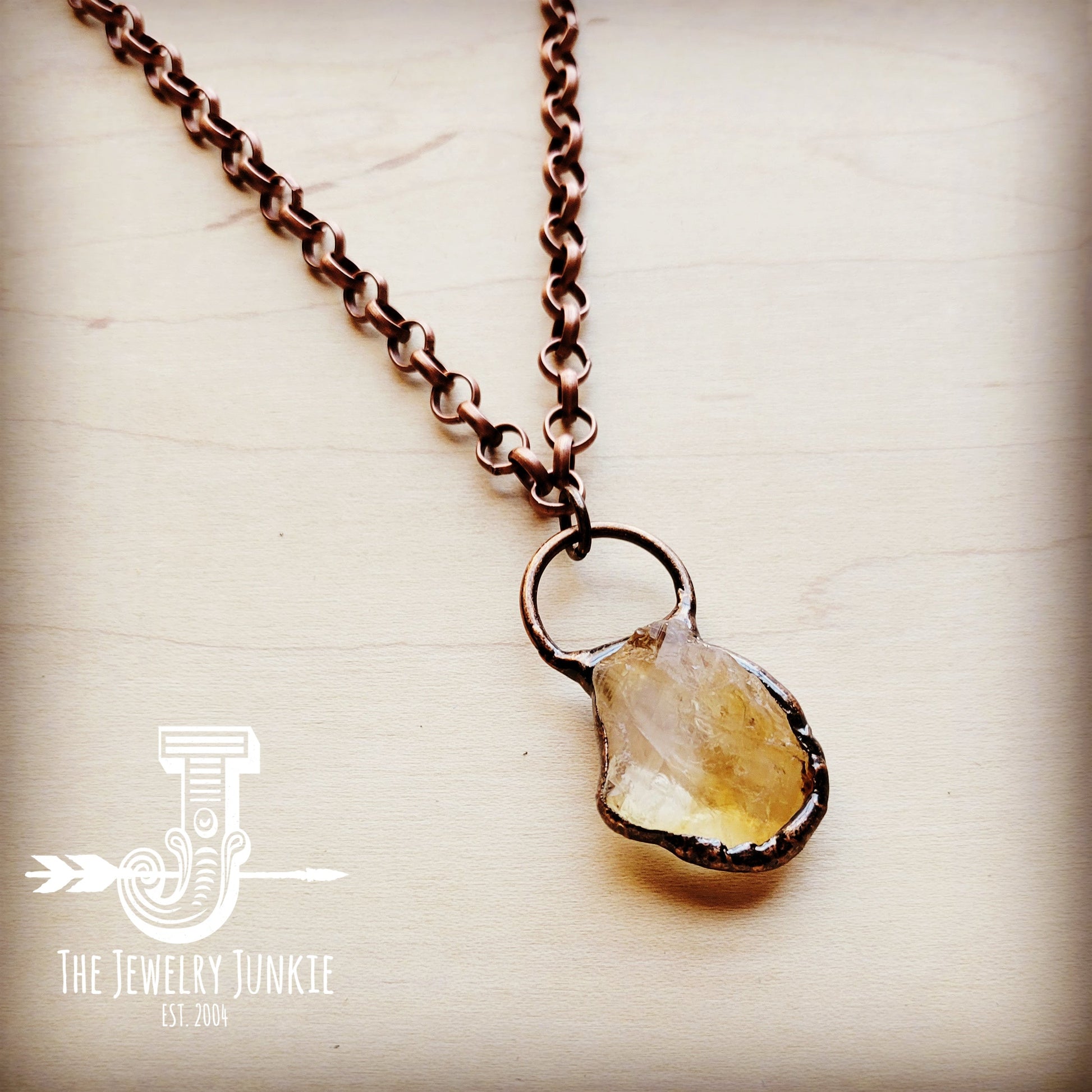 Long Copper Necklace with Genuine Citrine Copper Pendant 255g