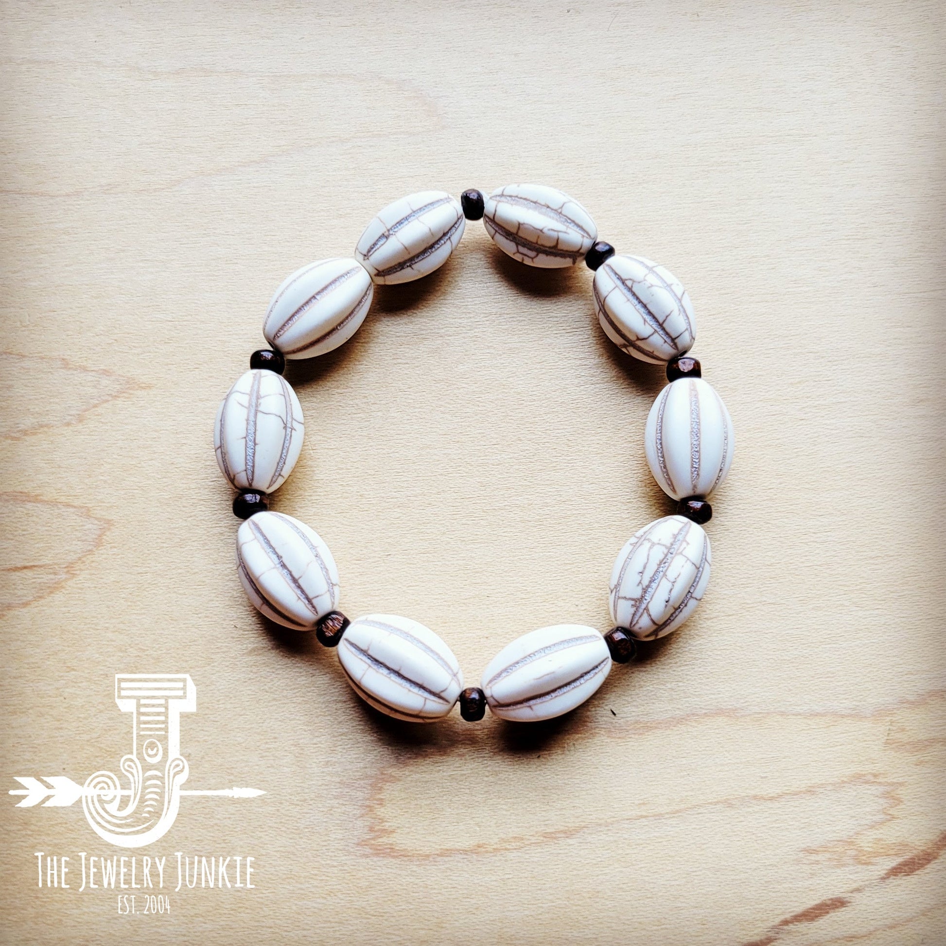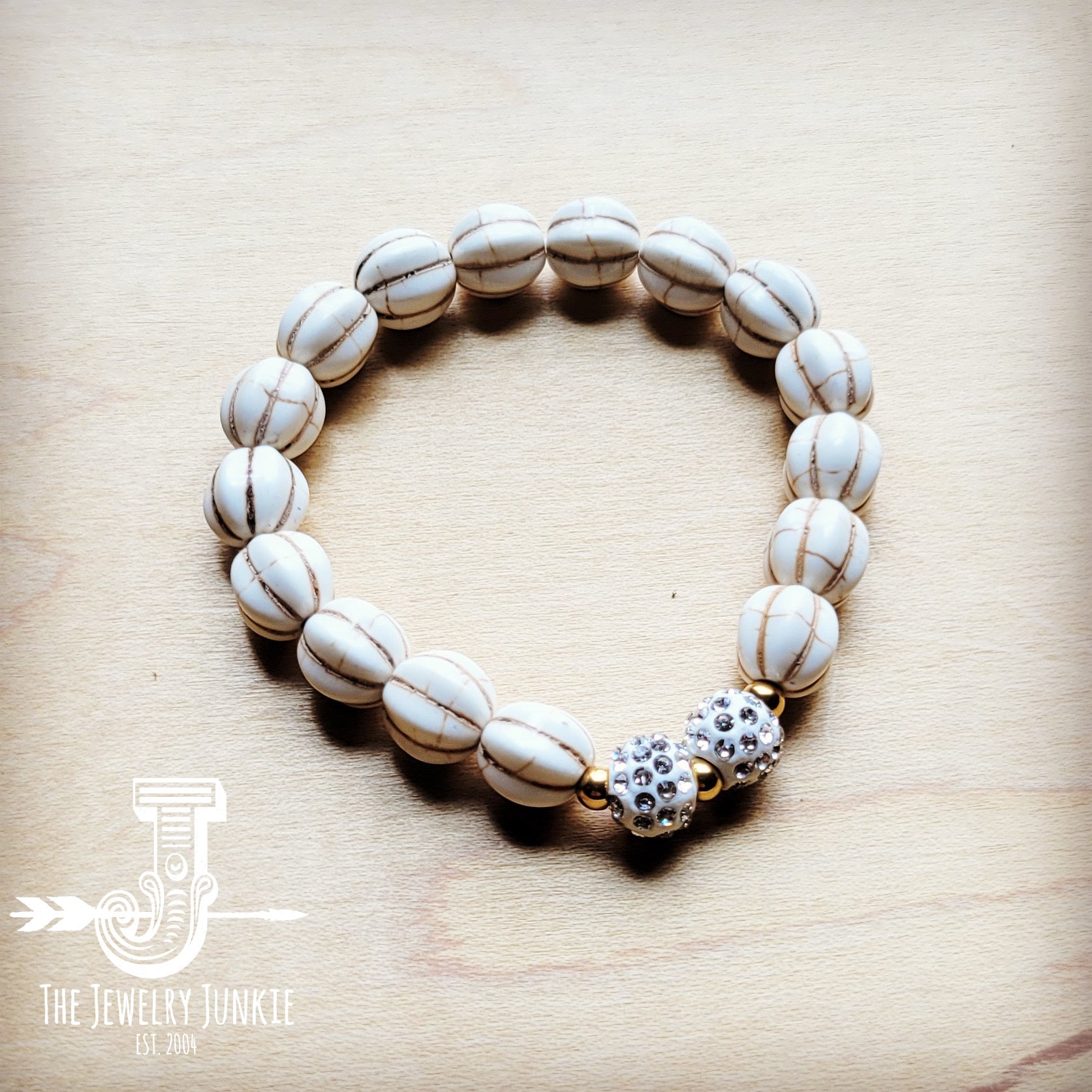 White Turquoise Melon Beaded Stretch Bracelet 809h