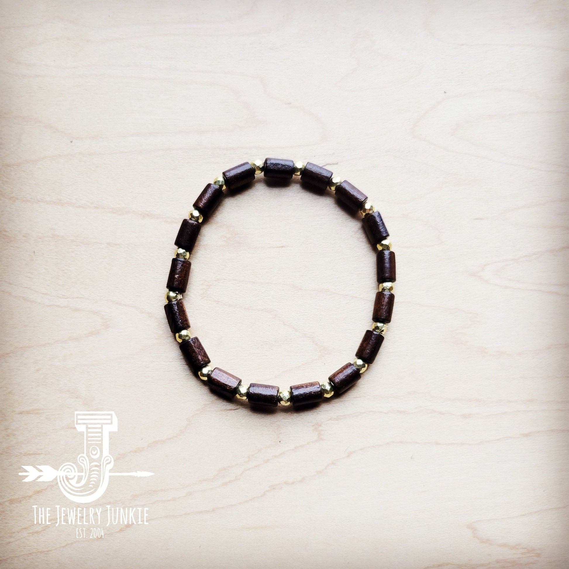 This wood stretch bracelet is perfect for your casual attire. It's crafted from high-quality beads and features a golden accent bead for a modern, luxurious look.